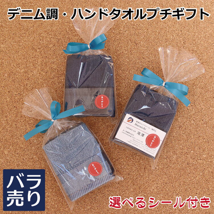 デニム調ハンドタオル2枚組・プチギフト(W048) 選べるシール付き ギフト ラッピング 上質 メンズ 男性 300円台 インディゴ ジーンズ ありがとう お世話になりました