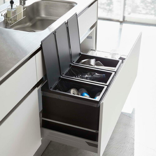 【送料無料】山崎実業 シンク下蓋付きゴミ箱 タワー 3個組 ブラック 5342